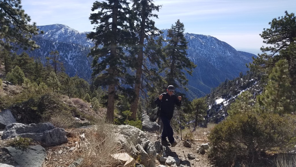 After we reached the top (8,800 feet), though, we rested. We went to a ledge which afforded a great view of our homes and beyond. Perhaps because of the windy day, the views especially clear and far. We could make out the San Pedro Peninsula, the Pacific Ocean, Fashion Island in Newport Beach, and so on. The views of the snowy mountain tops were breathtaking.