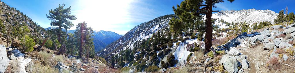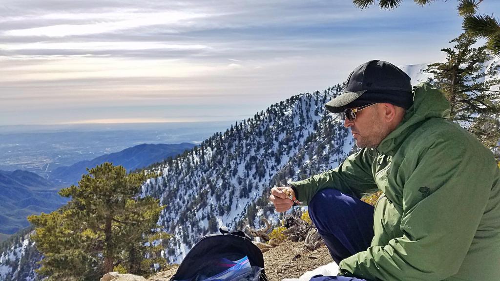 When I introduce someone to hiking, I usually take them to one of my two favorite local destinations: Santa Anita Canyon or Mt. Baldy (officially, Mt. San Antonio). Both are within 1-hour driving distance of central Orange County. Which one to go? Alex mentioned, “Views” so it was Baldy. And between the two most popular trails at Baldy, the Ski Hut Trail offers “grander views” so we headed there.