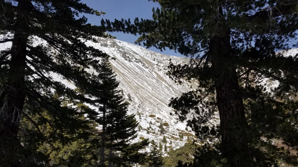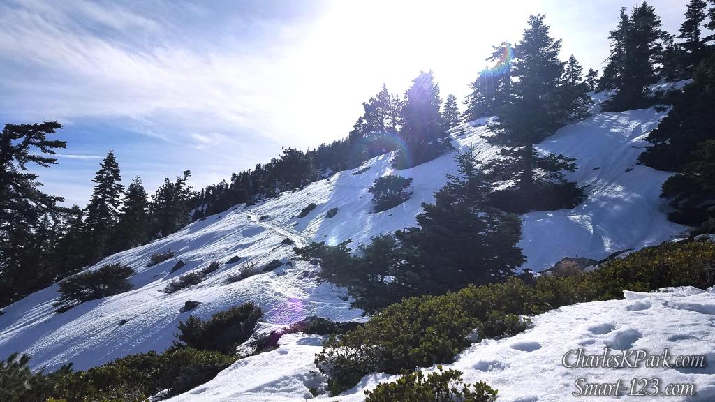 Alex seemed happy all the way, just as I myself often find happiness while hiking alone. We were impressed with the beauty and grandeur of the snowy Mt. Baldy. We heard Baldy sing to us using the pine trees, its gorges, and its canyons as its instruments. We met the challenges she threw at us with mature but humble sobriety. We enjoyed each other’s company. All the other hikers were nice and courteous.