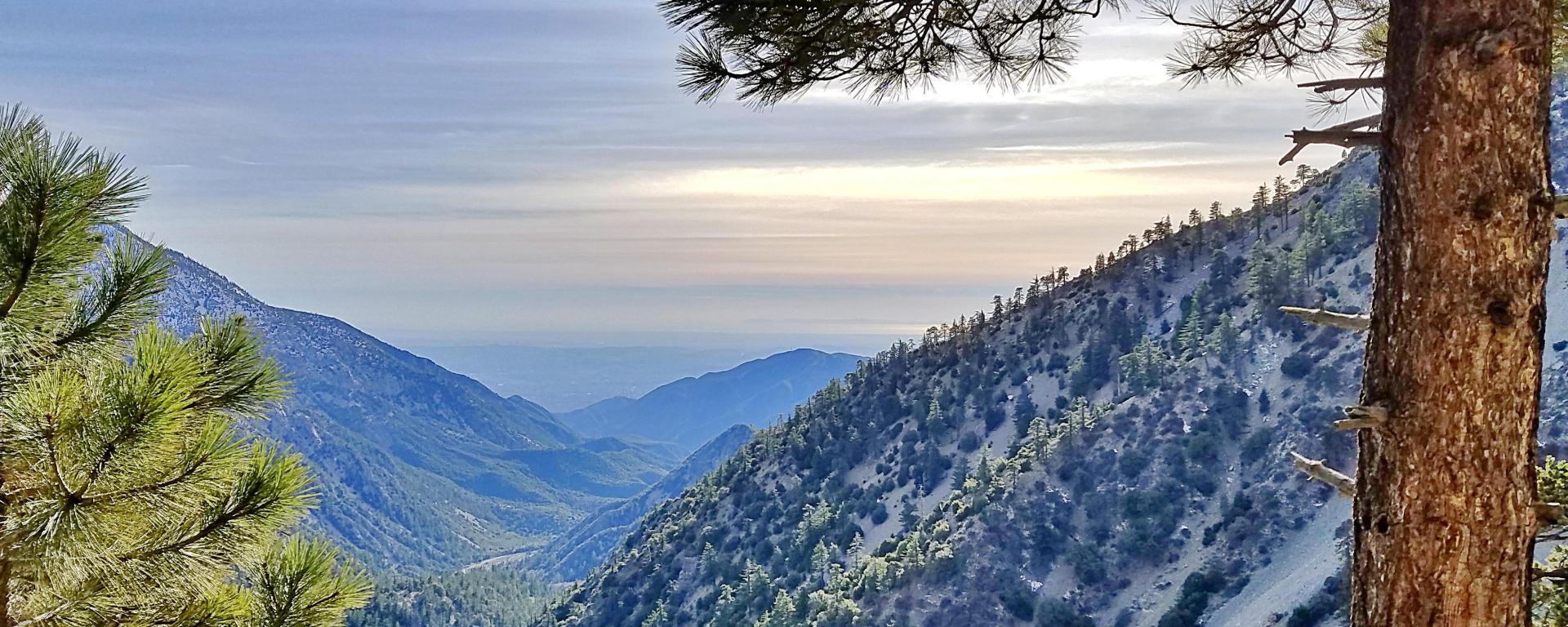 When I introduce someone to hiking, I usually take them to one of my two favorite local destinations: Santa Anita Canyon or Mt. Baldy (officially, Mt. San Antonio). Both are within 1-hour driving distance of central Orange County. Which one to go? Alex mentioned, “Views” so it was Baldy. And between the two most popular trails at Baldy, the Ski Hut Trail offers “grander views” so we headed there.