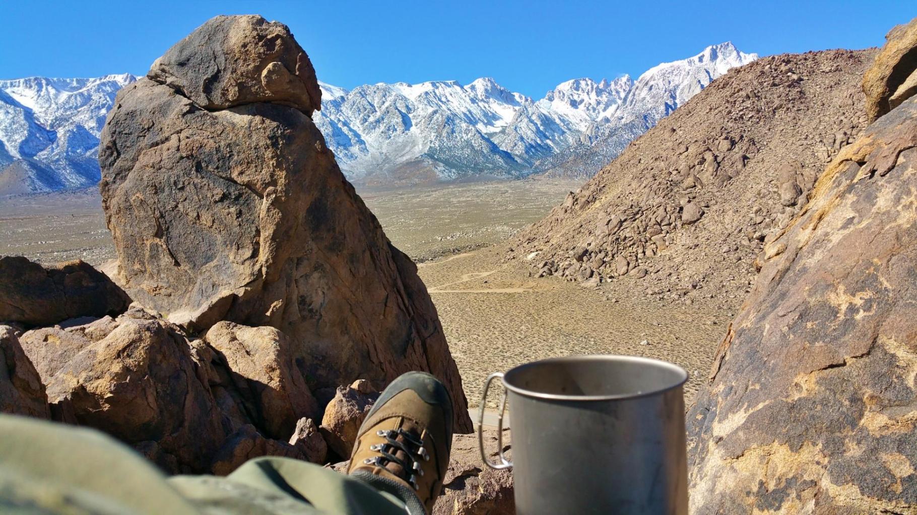 Staying on the trail is the safest thing to do. You minimize the risk of getting lost or falling down. It’s also the easiest way to hike. Most of the trails on the maps are well-defined and well maintained. On heavily trafficked trails, you also protect the landscape. But occasionally, while traversing over mountains and through the valleys, my eyes fixate on the tall imposing summits that pass by. Each time, they beckon, “Come hither.” I respectfully reply, “No way.” Indeed, the mountains, like Mt. Tom below, are often scary and austere as they are beautiful and magnificent. I fell like a small mouse compared to some of the great mountains in the Sierra Nevada.