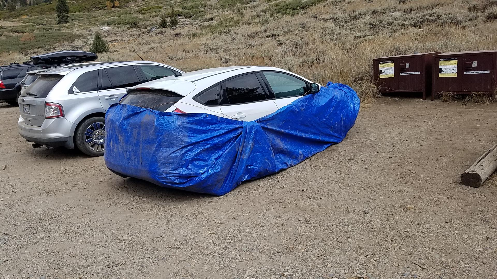 So what happened? The day before the trip, I spent a lot of time modifying a single person tent I had bought a few years ago. It did not cost too much but I could not throw it away (I am more likely to give it to a friend, donate it, or keep it as a loaner than to throw anything away). I replaced the poles and added two more, making it much stronger now – which now likely can withstand a pile of snow (but there’s really no space inside to sit up, change, or adjust the sleeping bag). The night before, I also went to see a movie and grab a dinner with my wife- the soju at dinner probably did not help. So maybe I slept at 11:30 pm and woke up at 4 am. I packed up, started the drive at about 5:50 am and got there by 11:30 am and began the hike after a bite to eat and wrapping up the car (from the marmots) at about 12:30 pm. With a 40 lb pack, which I am not used to, it was hard going up. The last two mile was difficult enough but I struggled with the last mile, with shortness of breath, a headache, and lack of energy. I was not in the best of conditions. But by taking it slowly and taking a lot of breaks, I made it to campsite at the lower Monarch Lake.