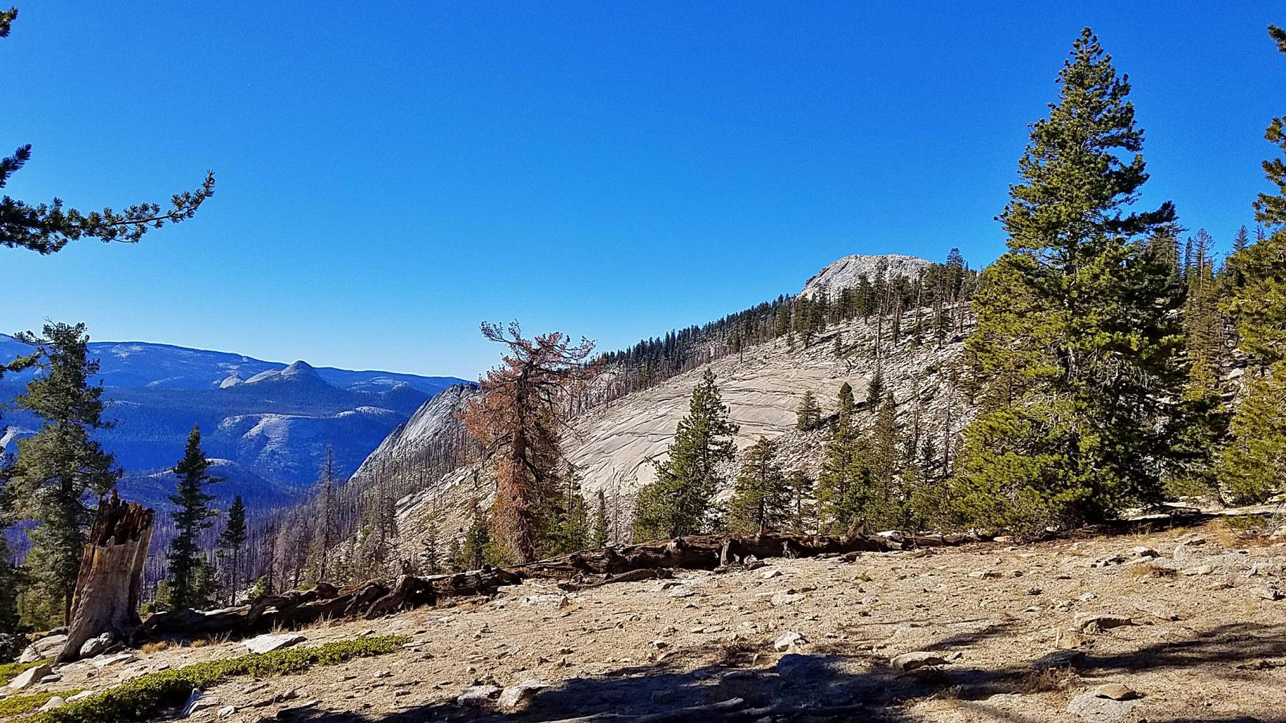 Hwy 120, or the Tioga Road, gently curves and rises through the forest is beautiful and verylong. It is about 75 miles long stretching from the Yosemite Valley to Mono Lake. From the valley to the Cloud Rest trailhead, it is about 46-miles distance. It was dark and quiet most of the way with dawn breaking just before Olmsted Point. By the time I arrived at the trailhead at about 6:45 am, it was quite bright. There was only one other car.